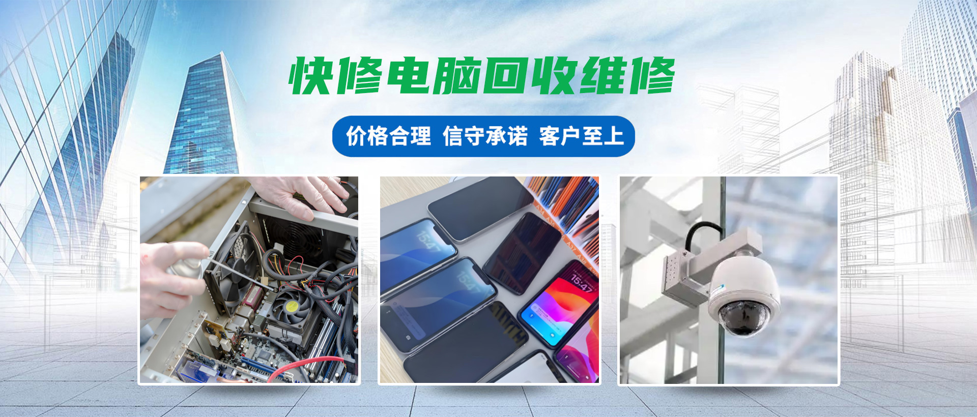 杭州快修电脑回收维修长期提供笔记本电脑维修、台式机组装、手机电脑回收、网络布线、监控安防、笔记本电脑出租、显示器电视机维修换屏、电脑出租抵押等服务,我们一直秉承“一切为用户服务”的经营理念,为客户提供稳定完善的各类服务,赢得了众多客户的信赖和好评。